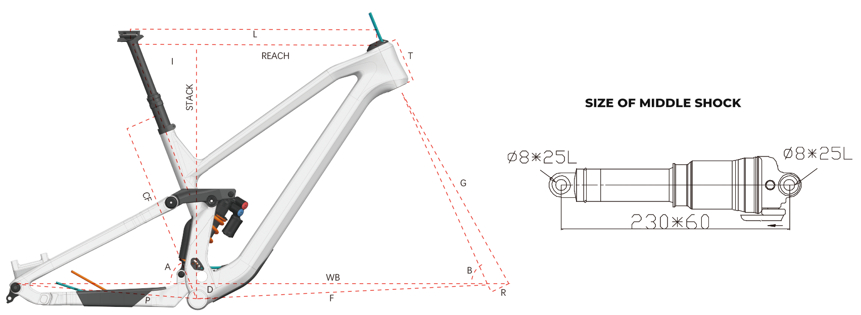 - 9 Middle shock: 230x60mm